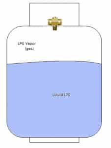 LPG is liquid in a cylinder with a pressure-sensitive area at the top where it transforms into LPG vapor. As seen in the figure below, the LPG gas vapor pressure is kept at the top of the container, while the liquid LPG is kept at the bottom.